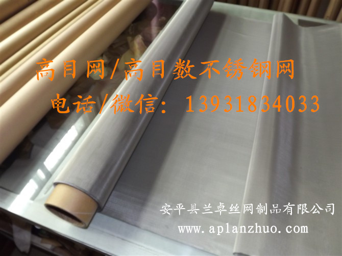 本廠主要生產的高目數不銹鋼網(又叫高精度不銹鋼網)有636目、600目、500目、450目、400目、350目、325目、300目、280目、250目、200目、180目、150目、120目。寬度為0.914米、1米、1.22米、1.3米、1.4米、1.5米、1.6米、2米。